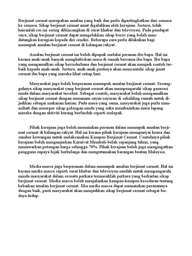 Berjimat Cermat Amalan Mulia Karangan Spm